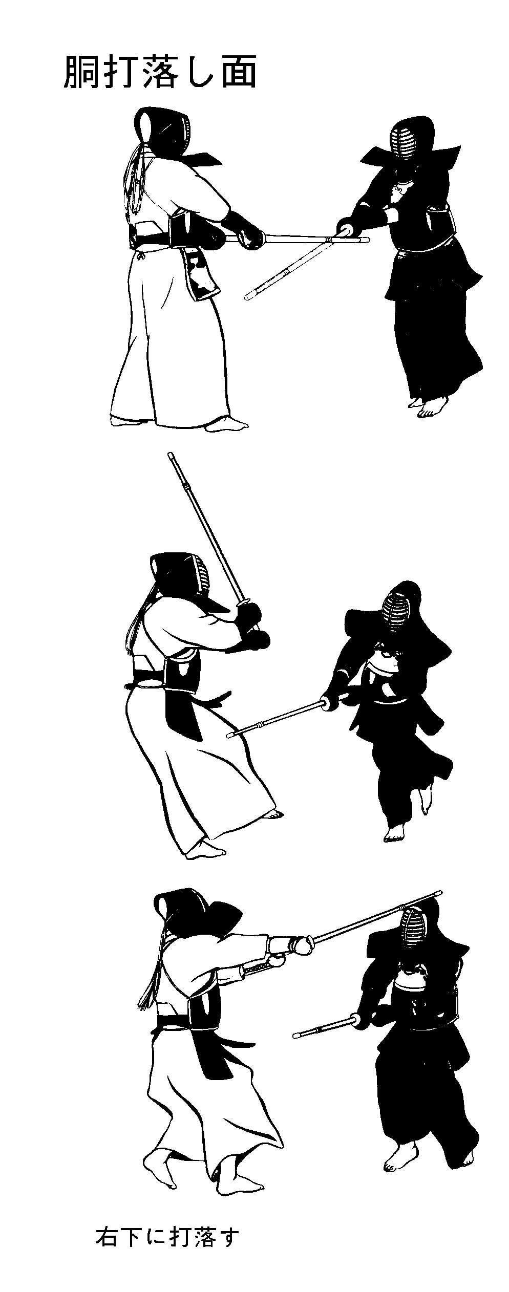 相手が胴を打ち込みに出たその瞬間に剣先で相手の剣を踏み込みながら押さえ、すかさず面を打ち込みます。